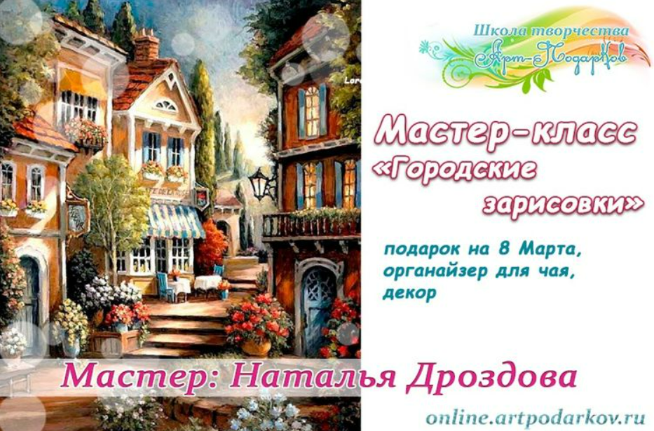 Курс «Городские зарисовки. Подарки любимым 2024», чайный органайзер, объемный панно-бокс. Мастер Наталья Дроздова.online.artpodarkov.ru