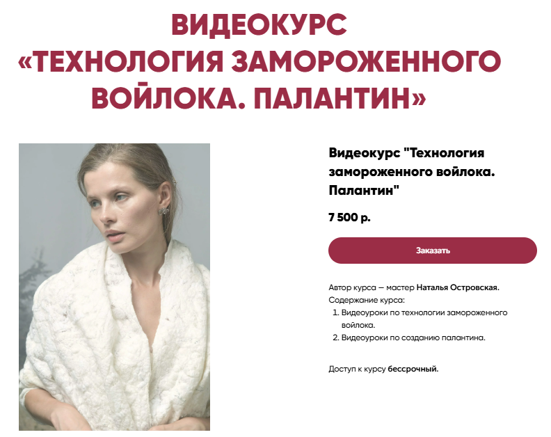 Вы не только узнаете секреты технологии бетонирования/армирования шерсти, но и получите уникальные навыки, которые позволят создавать удивительные изделия с минимальным коэффициентом усадки. Это преимущество откроет перед вами новые горизонты в мокром валянии, а ваши творения будут радовать вас и ваших близких ни одно поколение!