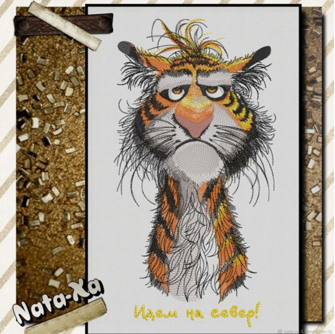 Название: Дизайн машинной вышивки «Тигра грустная». Всё размеры (2024)