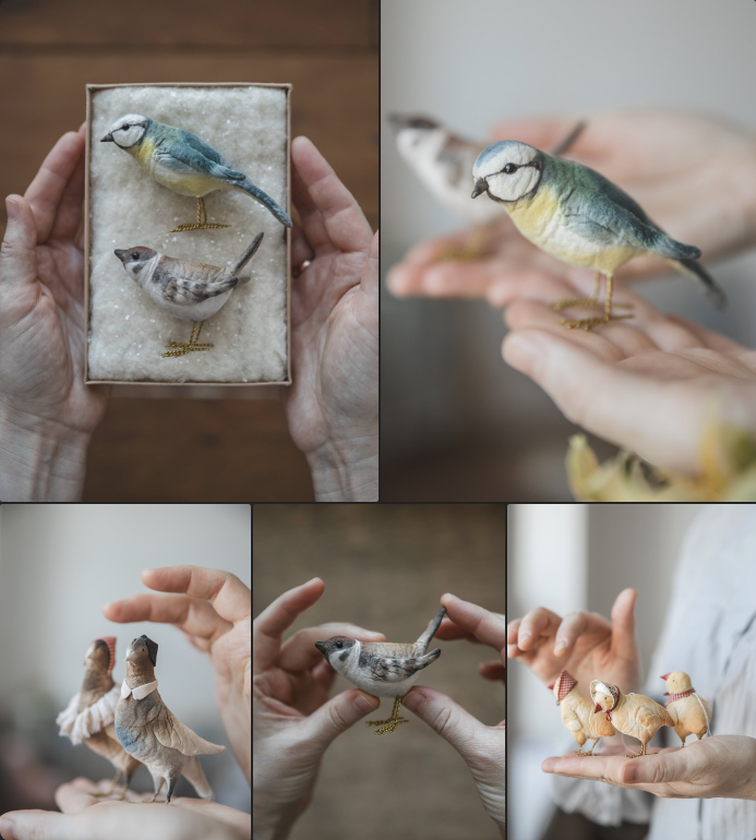 А ещё: вы заметили, что у синички и у воробушка стоят стеклянные глазки?