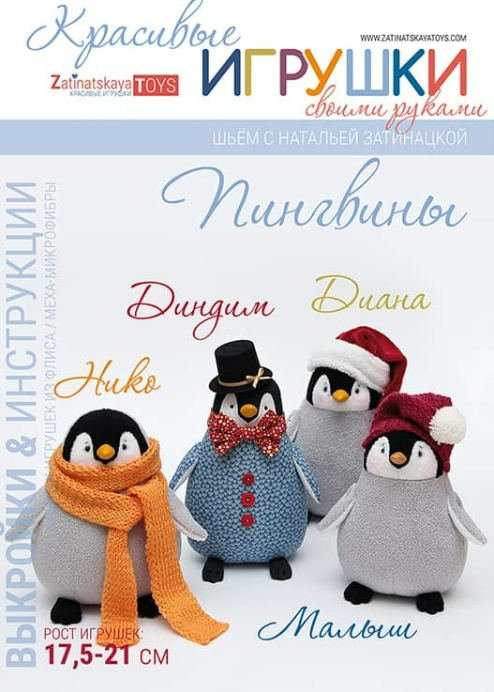 По моим выкройкам и пошаговым мастер-классам с фотографиями вы сошьёте своими руками копии пингвинов по имени Диндим, Малыш, Нико или Диана.zatinatskayatoys.com