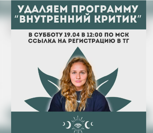 ❗Удаляем программу “Внутренний критик” Семинар с групповой проработкой темы: "Нелюбовь к себе" 💌Раскладываю по полочкам, откуда берутся эти программы и даю алгоритм их удаления. С помощью записи эфира можно очистить пространство ума от: ❌Стыда ❌Неуверенности ❌Синдрома самозванца ❌Роли...t.me