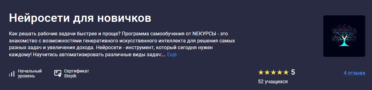 Как решать рабочие задачи быстрее и проще? Программа самообучения от NEКУРСЫ - это знакомство с возможностями генеративного искусственного интеллекта для решения самых разных задач и увеличения дохода. Нейросети - инструмент, который сегодня нужен каждому! Научитесь автоматизировать различные...stepik.org