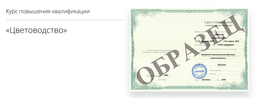 Пройдите обучение на курсе "Цветоводство" длительность 108 часов и получите удостоверение о повышении квалификации или сертификат.infourok.ru