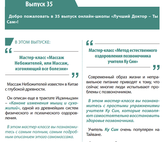 Добро пожаловать в тридцать пятый выпуск онлайн-школы «Лучший Доктор – Ты Сам»!