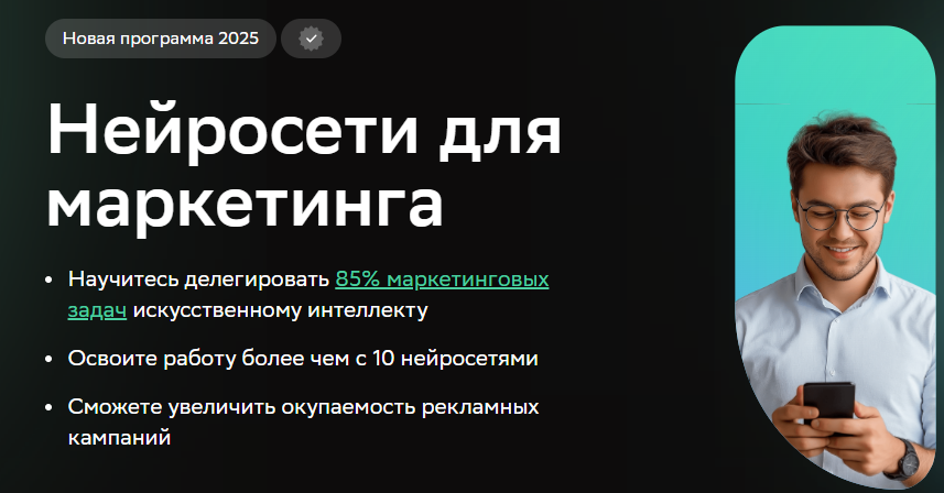 Разберётесь, как разработать и запустить маркетинговую стратегию при помощи ИИ: как свести в единый план цели, аудитории, каналы и результаты анализа. - Блок 6. ИИ для креативных задач продвижения и спецпроектов