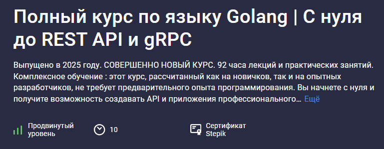 Слив курса Полный курс по языку Golang. С нуля до REST API и gRPC [stepik] [NeuralGo]