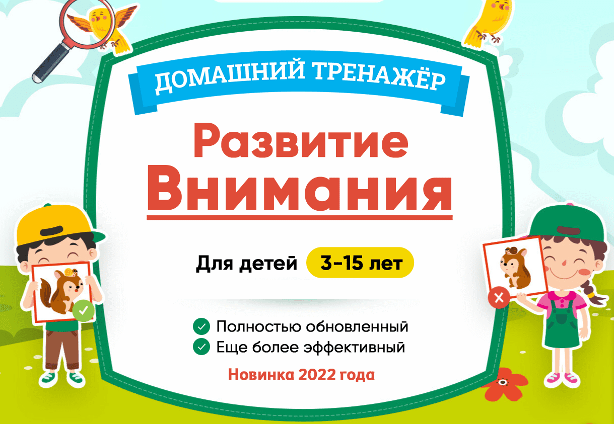 Сегодня мы представляем вам полностью Обновленный Домашний Тренажер по развитию Внимания у детей от 3 до 15 лет.