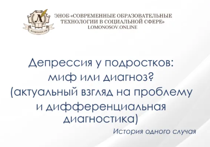 Дать понятия об актуальности вопроса, этиологии и патогенезе депрессий у подростков, диагностике и дифференциальной диагностике.
