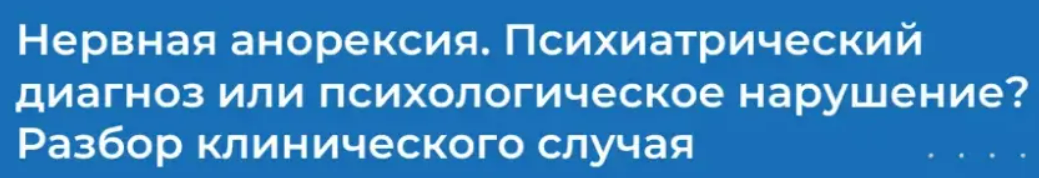 врачи-психиатры, врачи-психотерапевты, врачи-лечебники, врачи-педиатры, практические и клинические психологи, педагоги-психологи, социальные работники, а также любые другие специалисты помогающих профессий. Цель и задачи вебинара. Цель: сформировать понимание что такое нервная анорексия, кто может ставить такой диагноз, как проявляется, какие есть варианты помощи при нервной анорексии. Задачи: • рассмотреть основные виды нервной анорексии; • рассмотреть особенности, в зависимости от пола и возраста; • познакомиться с коморбидностью; • рассмотреть частный случай НА.