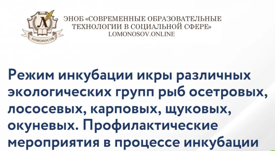 Режим инкубации икры различных экологических групп рыб: осетровых, лососевых,