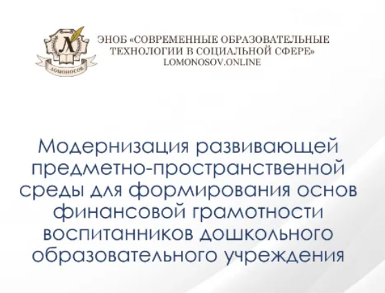 В ходе вебинара рассматриваются требования, предъявляемые к развивающей предметно-пространственной среде в детском саду, необходимой для формирования основ финансовой грамотности дошкольников, алгоритм создания среды, способы оценки ее качества.