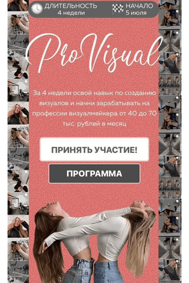 За 4 недели освой навык по созданию визуалов и начни зарабатывать на профессии визуалмейкера от 40 до 70 тыс. рублей в месяц.