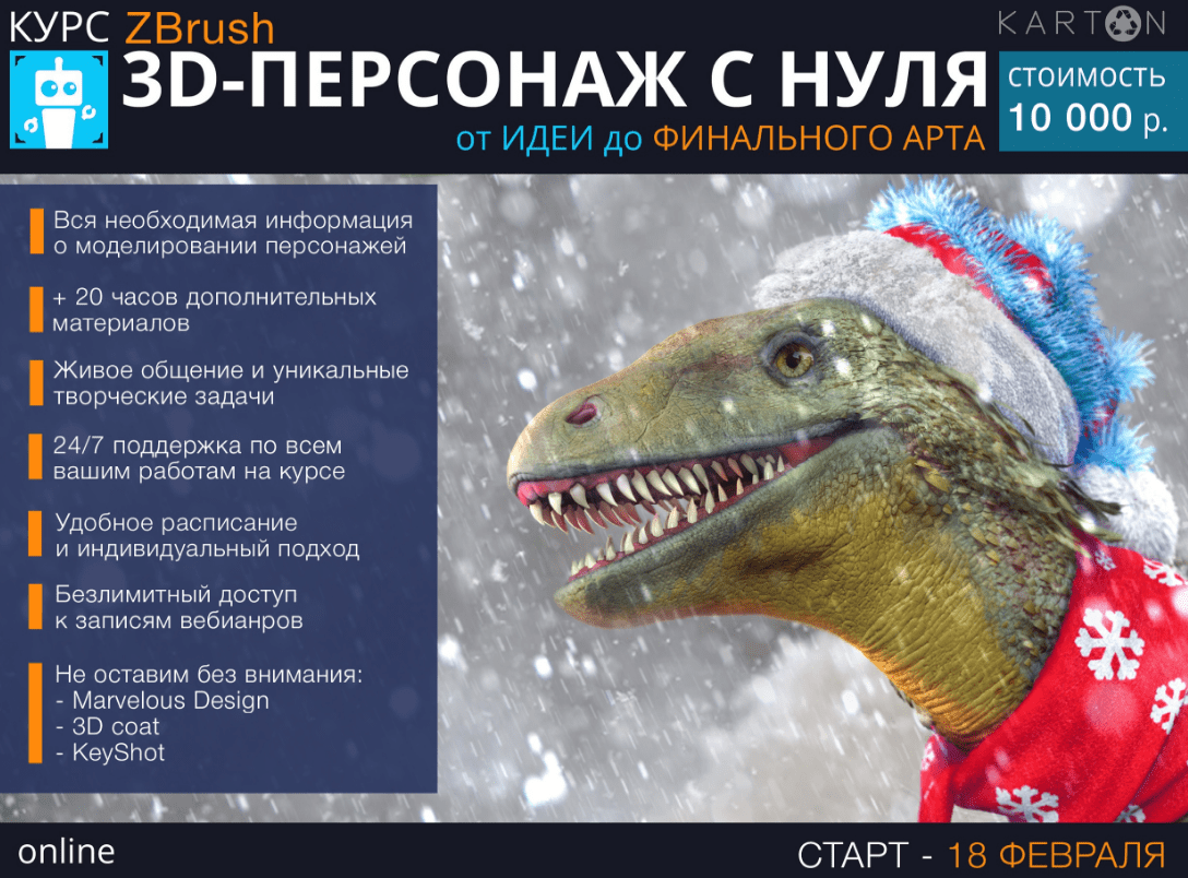 Даже, если вы никогда до этого не работали в ZBrush, не знали с какого боку подступиться к этой мощной и увлекательной программе - курс даст вам полное понимание того, как выстроить свою работу в ней. Так же мы познакомимся с программами 3Dcoat, KeyShot и marvelous designer.
