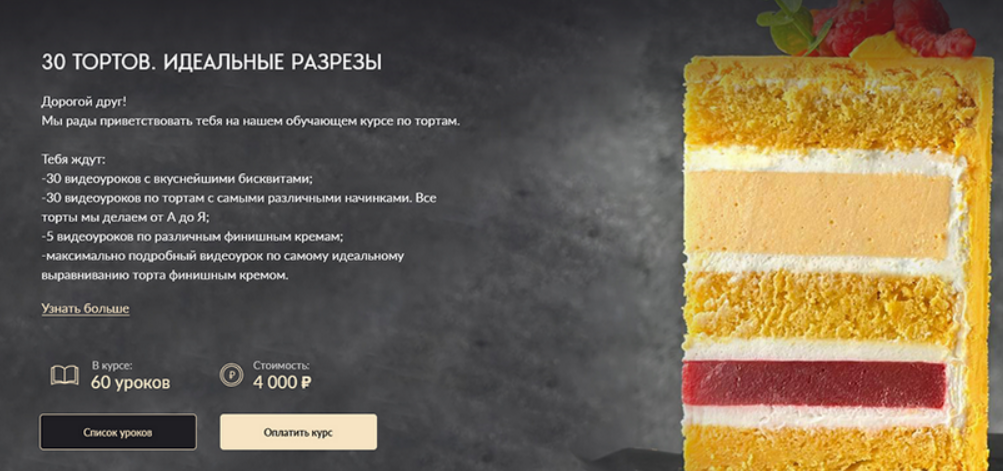 - 30 видеоуроков по тортам с самыми различными начинками. Все торты мы делаем от А до Я;