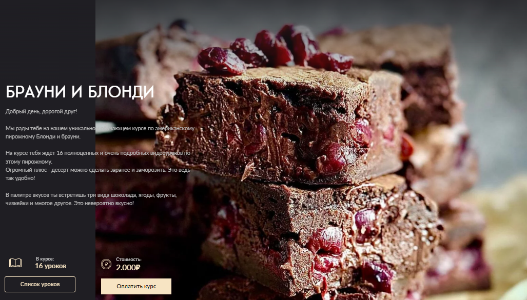 Курс «Брауни и Блонди» с уроками и рецептурами по этим американским десертам.