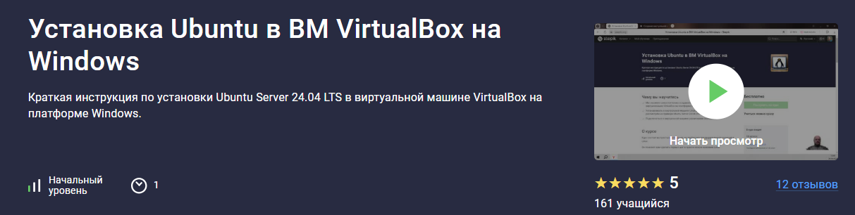 Краткая инструкция по установки Ubuntu Server 24.04 LTS в виртуальной машине VirtualBox на платформе Windows.stepik.org