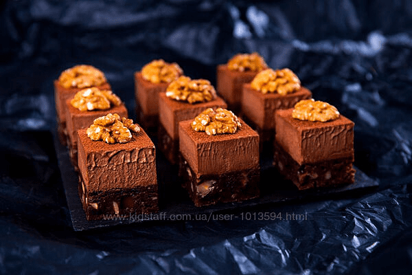 - Шоколадный бисквит «Брауни» с миксом из орехов и вареной сгущенкой;