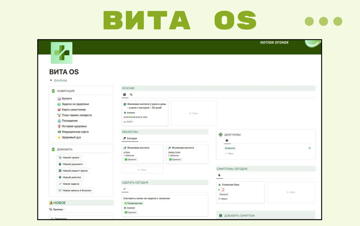 ВИТА OS - шаблон для организации и оцифровки всех процессов, связанных с заботой и мониторингом своего здоровья- отслеживай частоту и интенсивность симптомов