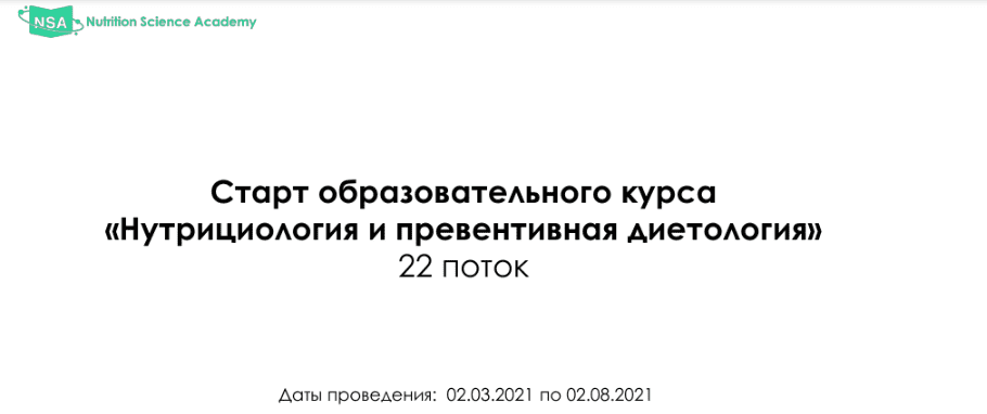 [NSA] Образовательный курс по нутрициологии и диетологии. 22 поток (2021)