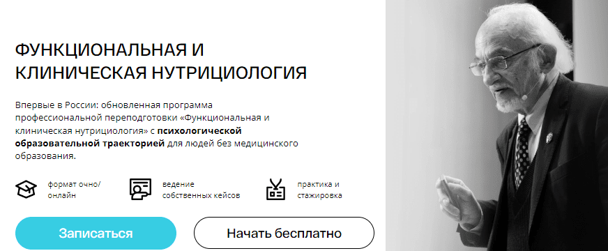 Первая в России международная университетская программа профессиональной переподготовки специалистов по функциональной и клинической нутрициологии для людей без медицинского образования.
