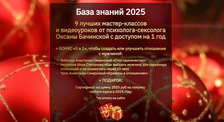 [Оксана Бачинская] База знаний 2025. 9 лучших мастер-классов и видеоуроков от психолога-сексолога (2025)