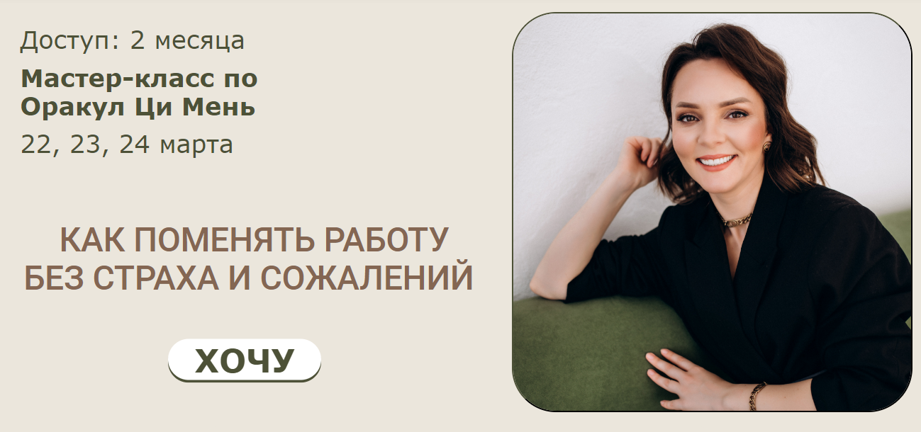 22, 23, 24 марта - будет проходить мастер-класс по Оракулу Ци Мень "Как поменять работу без страха и сожалений".