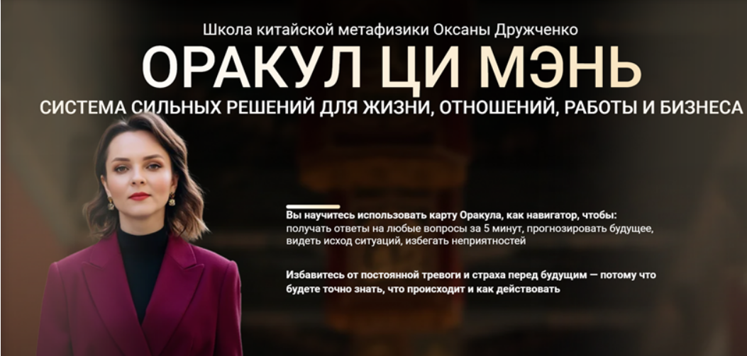 Школа китайской метафизики ОКСАНЫ ДРУЖЧЕНКО. Система сильных решений для жизни, отношений, работы и бизнесаpages.truebazi.com
