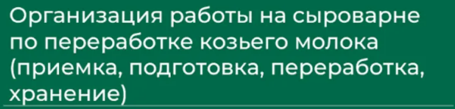- освоить особенности переработки козьего молока;