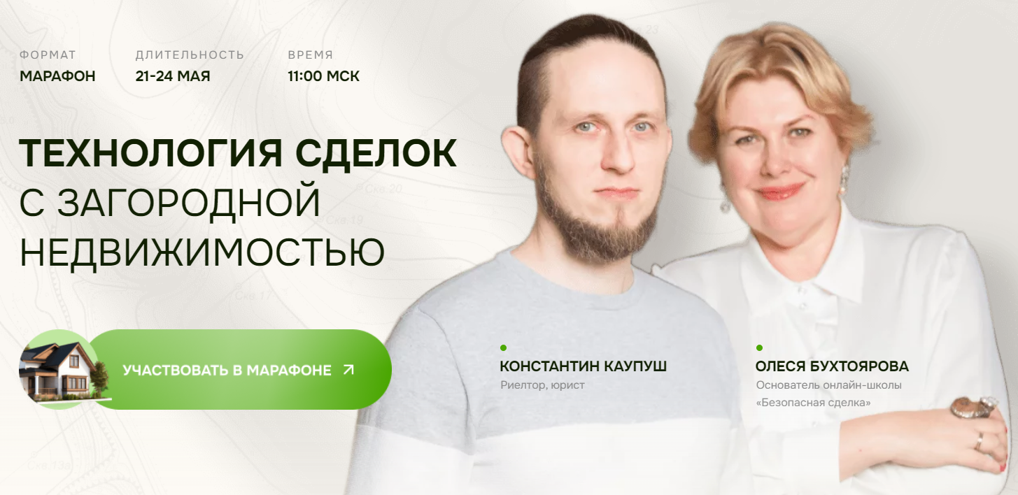 приглашаем вас на марафон «Технология сделок с загородной недвижимостью», который будет целиком посвящён этой теме.