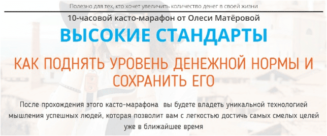 После прохождения этого касто-марафона вы будете владеть уникальной технологией мышления успешных людей, которая позволит вам с легкостью достичь самых смелых целей уже в ближайшее время