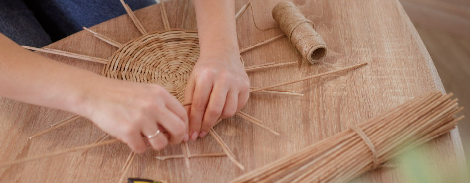 По такому же принципу можно плести разные изделия в основе которых круглое или овальное дно. Это может быть корзина, стол, колыбелька и пр.