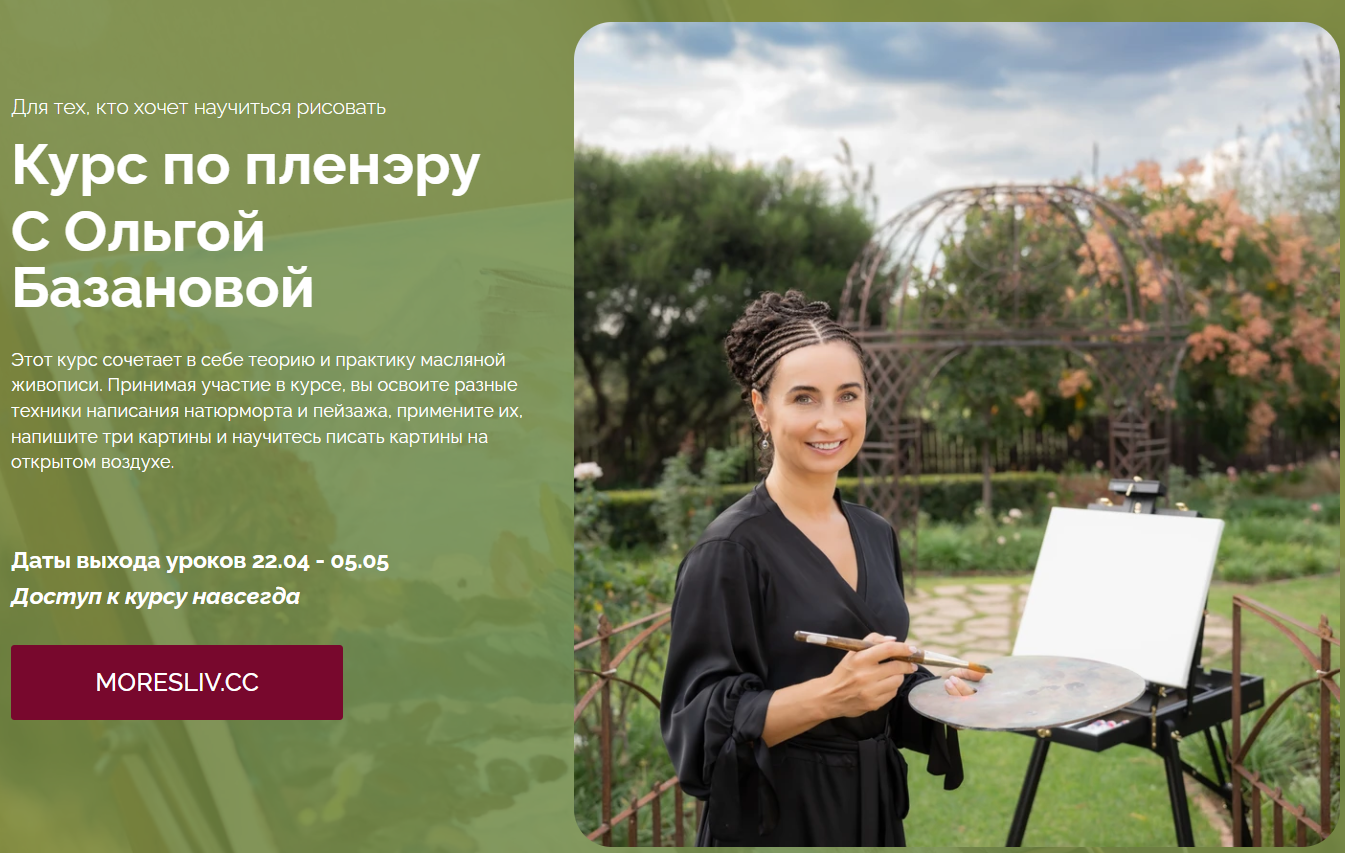 «Курс по пленэру» с Ольгой Базановой предлагает уникальную возможность погрузиться в мир живописи на открытом воздухе. Он поможет раскрыть творческий потенциал, научит видеть красоту в окружающем мире и выражать её через искусство.