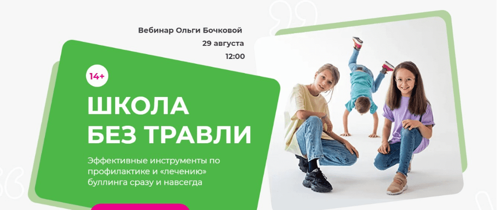Помимо нескольких профильных образований в России, Ольга закончила программу защиты и представления интересов детей в Kidower.org, США — организации, которая уже более 30 лет успешно помогает детям бороться с буллингом. Именно поэтому в вебинаре задействованы только самые эффективные и проверенные методы работы с проблемой.