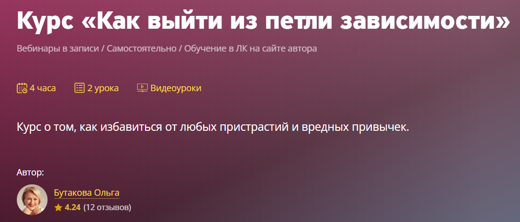 Курс «Как выйти из петли зависимости», автор: Бутакова Ольга | Агрегатор курсов ИнфоХит