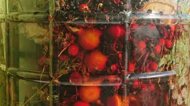 Суть сурицы в постепенном внесении растений, фруктов и ягод по мере их роста, цветения и созревания. Для каждой местности — этот процесс свой и растянут с апреля по конец октября. И особенно важно постепенное добавление растений в емкость с уже запущенным процессом брожения. Не забывайте также, что содержимое бутыли должно “осуриваться” солнцем, что регулирует процесс ферментации растений в её составе.