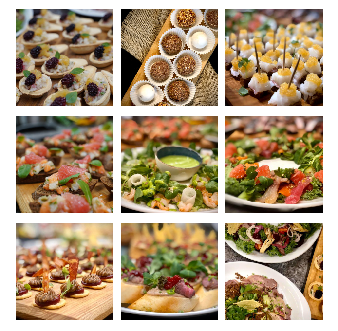 Рыба закусочная пятью способами, маленькие закуски на зубок и большие салаты на компанию. Мясо, креветки, язык, овощи, фрукты, грибы и ягоды. И даже закусочные конфеты из рыбной панна котты на кокосовом молоке, которые невозможно прекрасны.