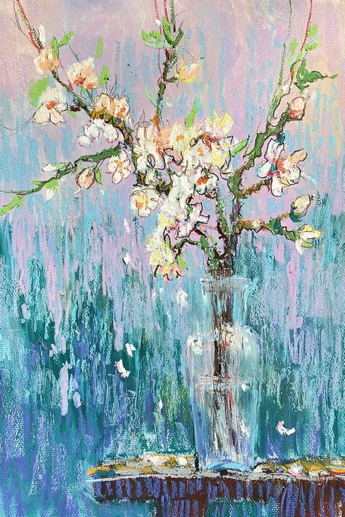 - напишете натюрморт с цветущими ветвями вишни, наполненный воздухом и настроением весны.