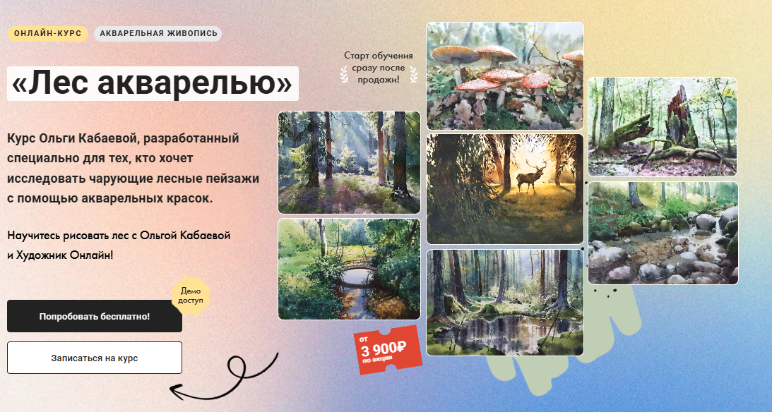 Курс Ольги Кабаевой, разработанный специально для тех, кто хочет исследовать чарующие лесные пейзажи с помощью акварельных красок.hudozhnik.online