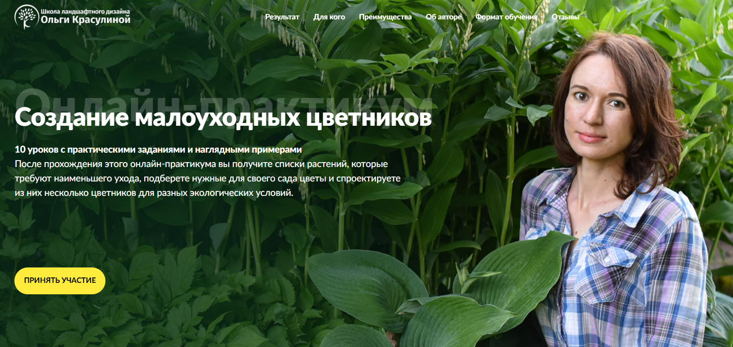 После прохождения этого онлайн-практикума вы получите списки растений, которые требуют наименьшего ухода, подберете нужные для своего сада цветы и спроектируете из них несколько цветников для разных экологических условий.