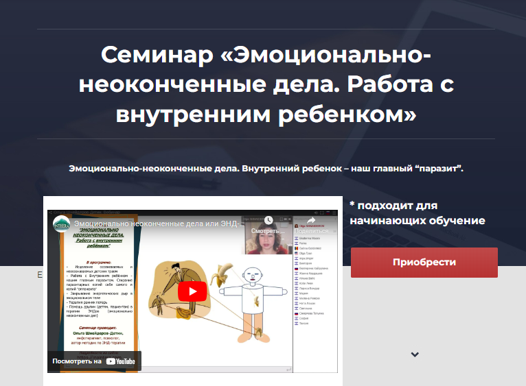 Авторский семинар Ольги Шнейдеров-Детин «ЭНД-МЕНДЕДЖИНГ» . Эмоционально-неоконченные дела. Внутренний ребенок — наш главный «паразит».
