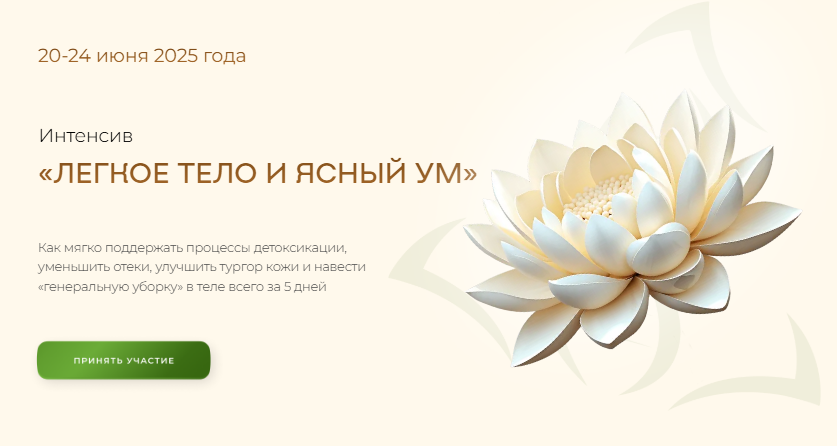 - Желаете «генеральную уборку» не только тела, но и сознания - через коуч-техники и медитации, с уважением к себе.