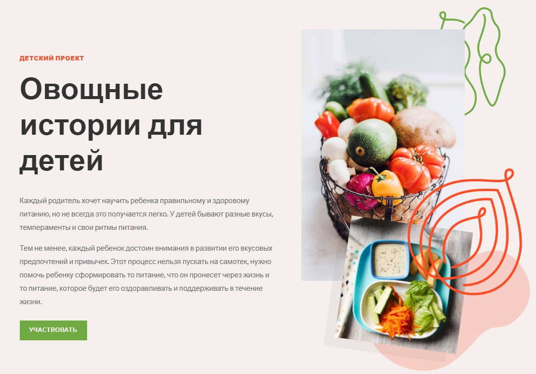 Недельный проект «Овощные истории для детей» нацелен на то, чтобы помочь родителям научить своих детей есть овощи, полюбить их в своем рационе, грамотно и безболезненно ввести овощи в рацион.