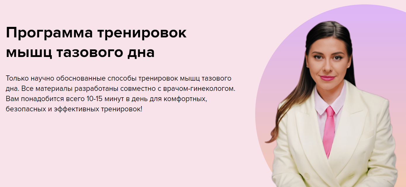 Только научно обоснованные способы тренировок мышц тазового дна и работы над избавлением от диспареунии и вагинизма. Все материалы разработаны совместно с врачом-гинекологом. Вам понадобится всего 10-15 минут в день для комфортных, безопасных и эффективных тренировок!