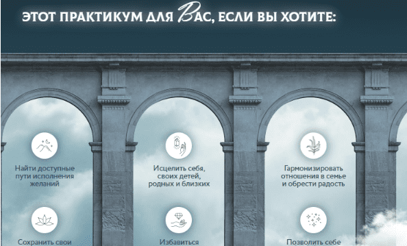 Это эффективный цикл практических занятий, которые помогут практически во всех сферах жизни. Вы увидите, что мешает вам, быть здоровым, успешным, уверенным в себе и иметь все необходимое.