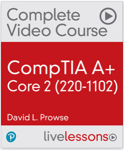 Полный видеокурс CompTIA A+ Core 2 (220-1102) (видеообучение) можно использовать в качестве единственного учебного ресурса, чтобы получить четкое представление о навыках A+. Он содержит 35 уроков, охватывающих все области экзамена CompTIA A+ Core 2 (220-1102): операционные системы, безопасность, устранение неполадок программного обеспечения и рабочие процедуры.