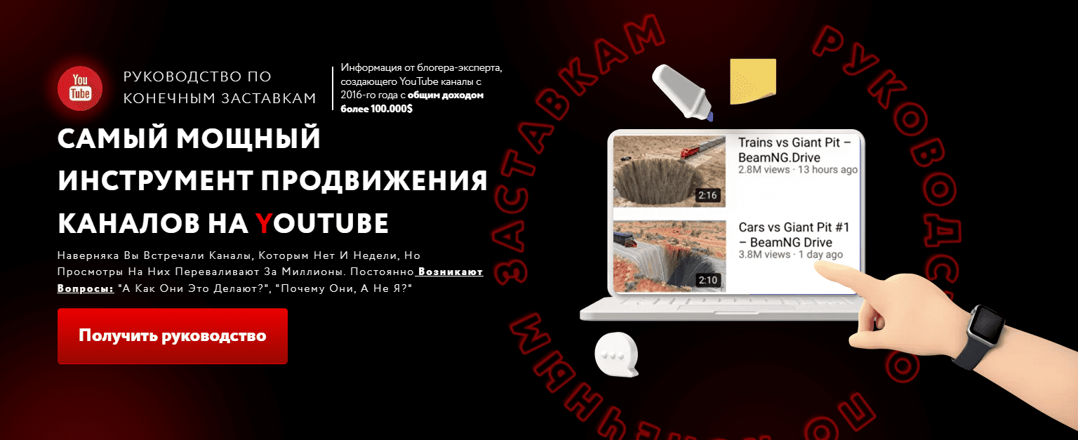 В 1-й главе я подробно рассказал про работу конечных заставок, показал как развить свой канал с 0 и выйти на крупные просмотры, а также дал ответы на все популярные вопросы.