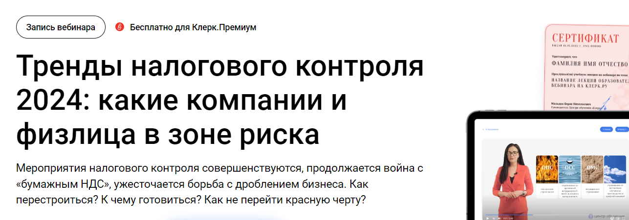 Тренды налогового контроля 2024: какие компании и физлица в зоне риска на официальном сайте klerk.ru — онлайн курсы и вебинары для обучения и повышения квалификации бухгалтеров!www.klerk.ru