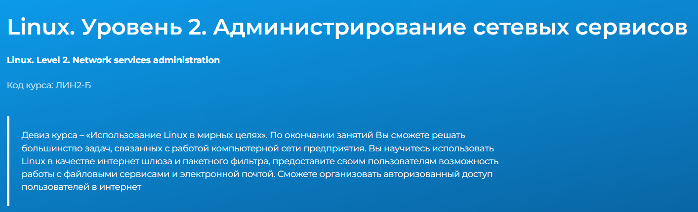 Скачать:Курс «Linux. Уровень 2. Администрирование сетевых сервисов» обучение онлайн и очно в Москве, цены и программа курса