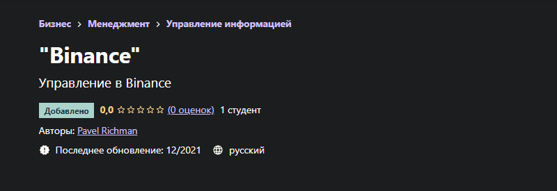 [Pavel Richman] [Udemy] "Binance" (2021)
